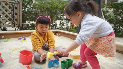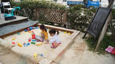 孩子難得在都市叢林內享受到玩沙的樂趣~